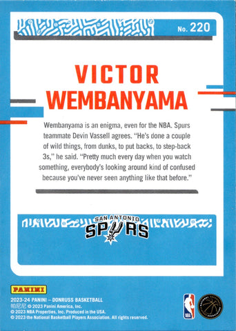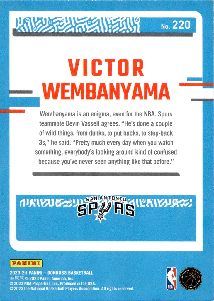 2023-24 Victor Wembanyama Panini Donruss ROOKIE San Antonio Spurs #220 3