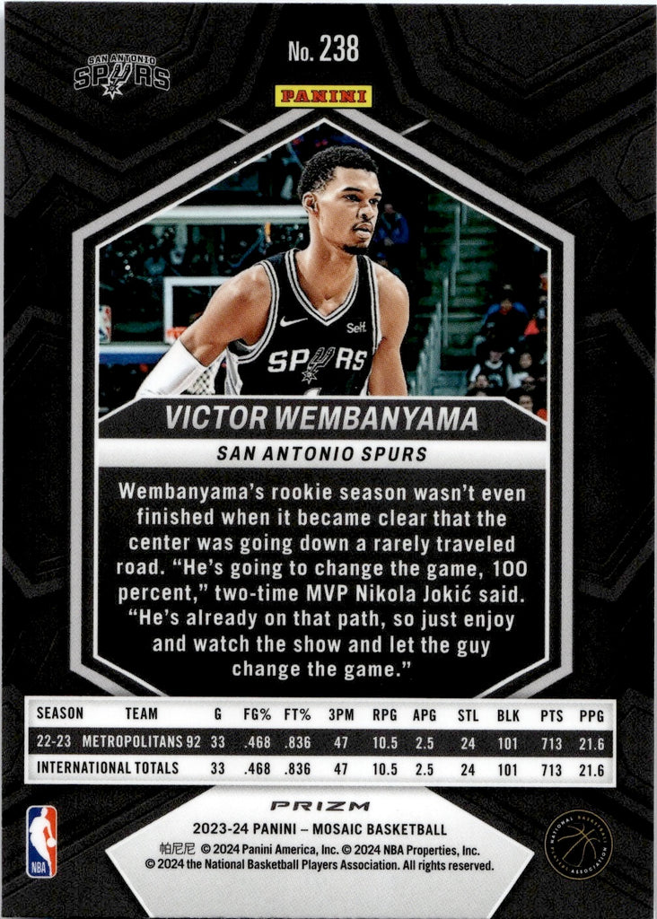 2023-24 Victor Wembanyama Panini Mosaic BLUE REACTIVE ROOKIE San Antonio Spurs #238