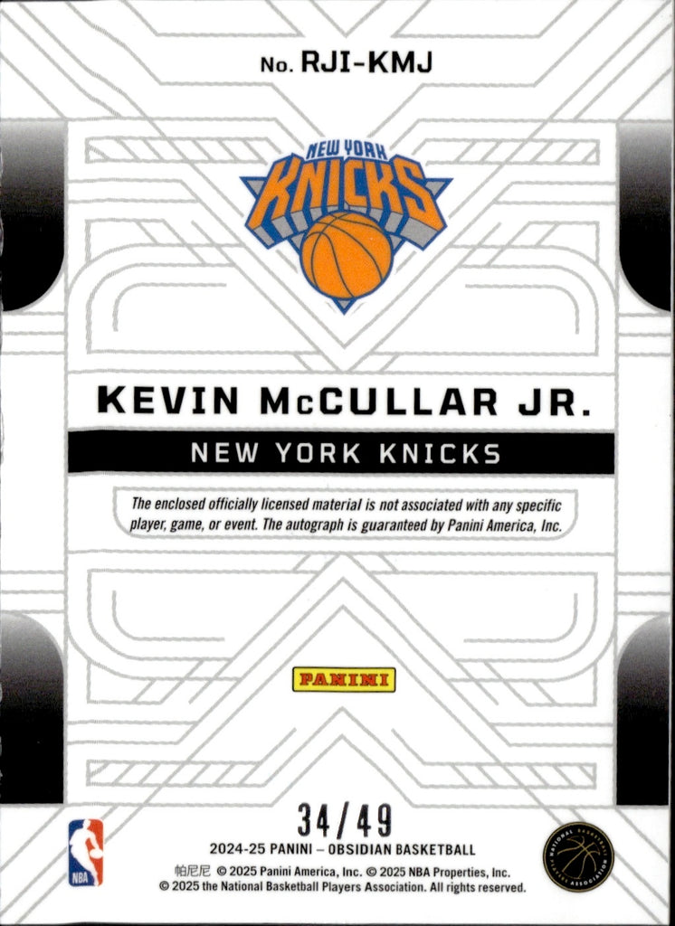 2024-25 Kevin McCullar Jr. Panini Obsidian PINK ROOKIE PATCH AUTO 34/49 AUTOGRAPH RELIC RC #RJI-KMJ New York Knicks