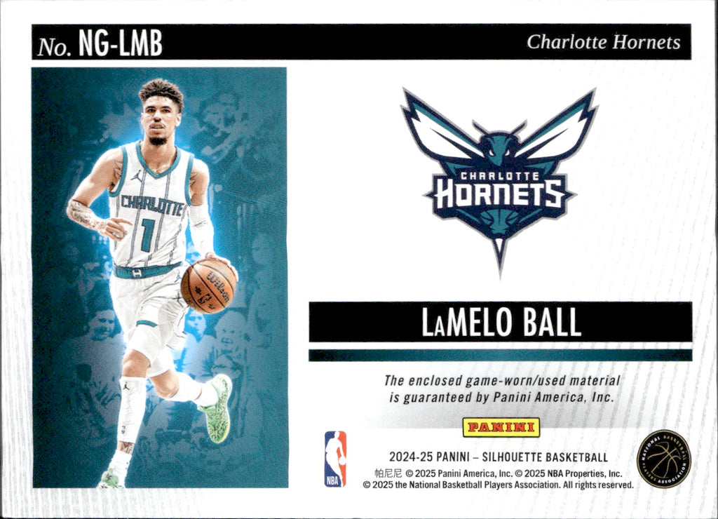 2024-25 LaMelo Ball Panini Silhouette NBA GEAR GAME-WORN JERSEY 36/99 #NG-LMB Charlotte Hornets