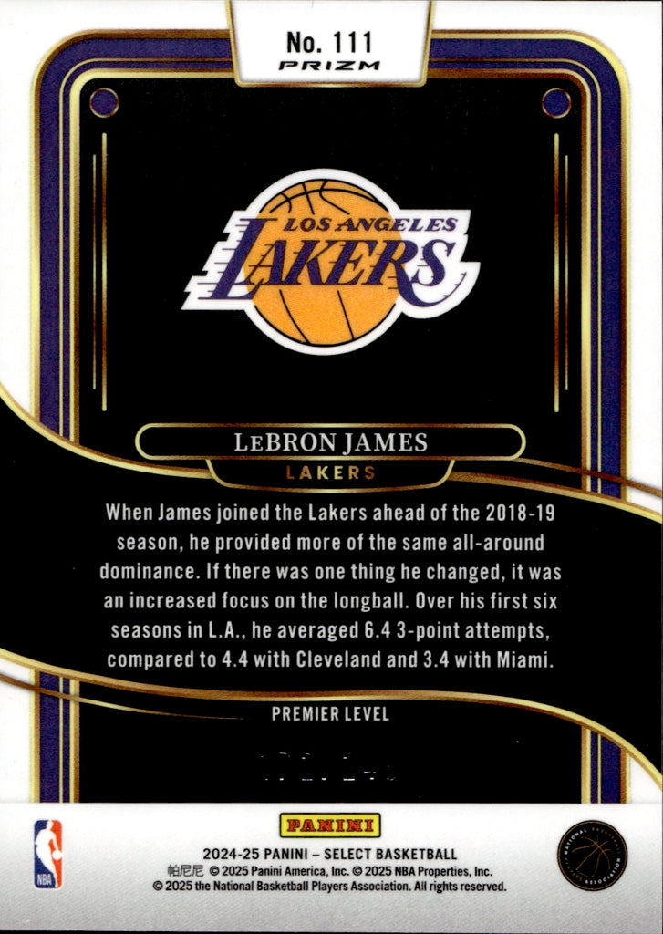 2024-25 LeBron James Panini Select PURPLE FLASH PREMIER LEVEL 172/249 #111 Los Angeles Lakers