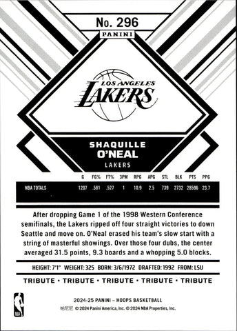 2024-25 Shaquille O'Neal Panini NBA Hoops SILVER 065/199 #296 Los Angeles Lakers HOF