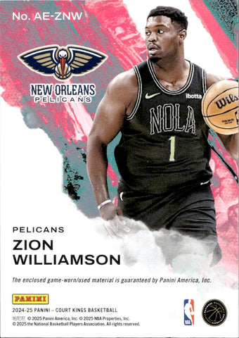 2024-25 Zion Williamson Panini Court Kings ARTISTIC ENDEAVORS GAME-WORN JERSEY #AE-ZNW New Orleans Pelicans