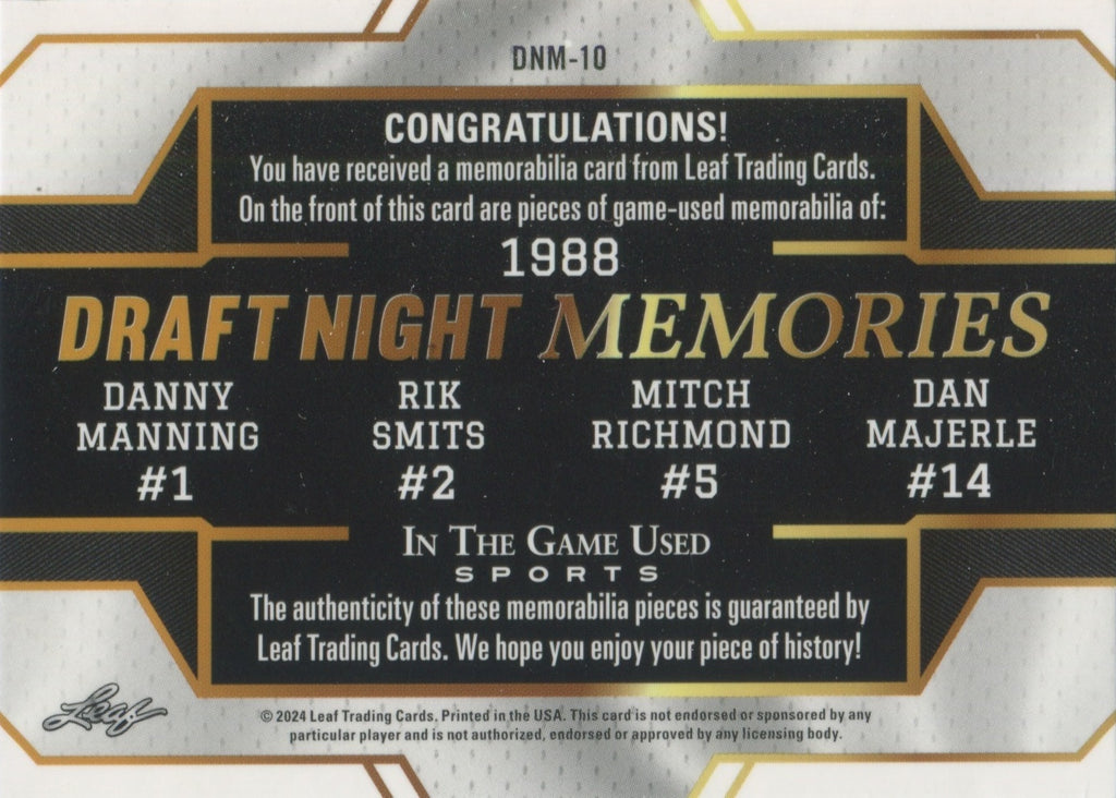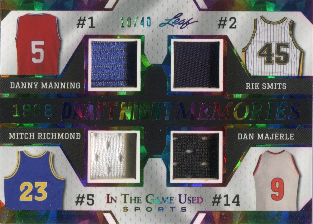 2024 Danny Manning Rik Smits Mitch Richomd Dan Majerle Leaf In the Game Used 1988 DRAFT MEMORIES RAINBOW FOIL QUAD JERSEY 10/40 RELIC #DNM-10 Clippers Pacers Warriors Suns