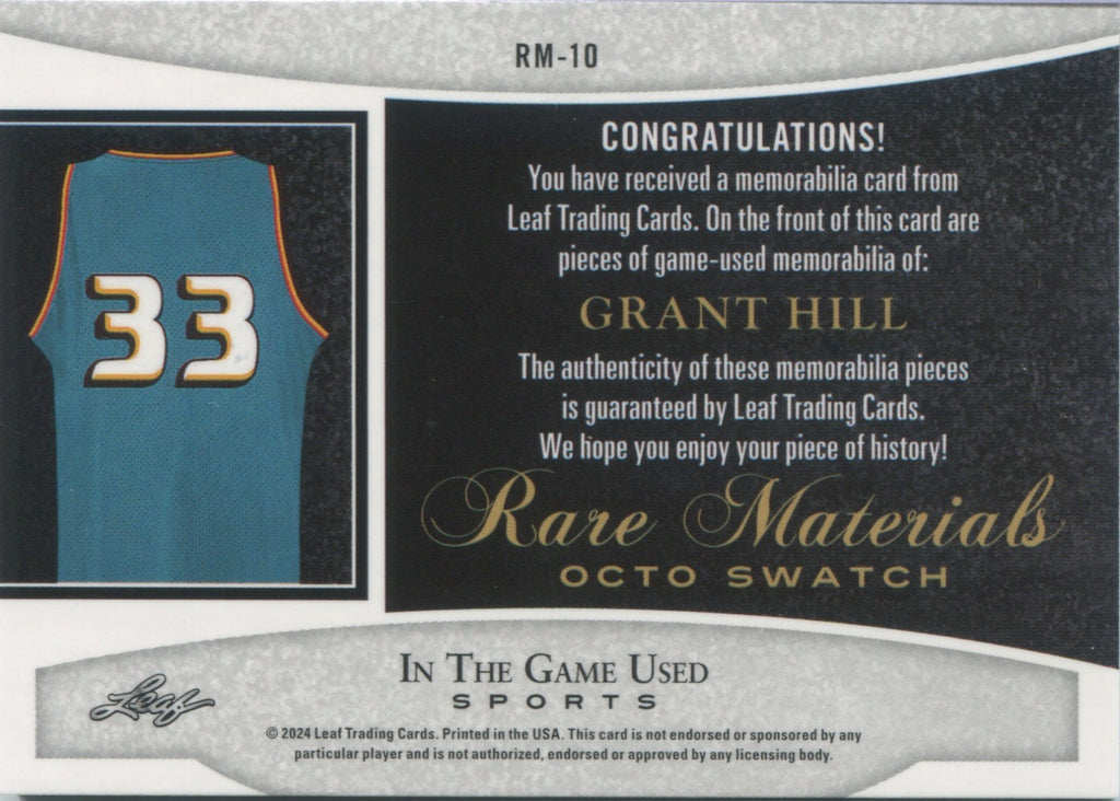 2024 Grant Hill Leaf In The Game Used RARE MATERIALS OCTO SWATCH PATCH JERSEY 2/5 RELIC #RM-10 Detroit Pistons HOF