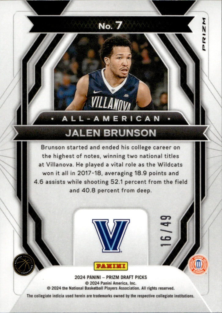 2024 Jalen Brunson Panini Prizm Draft Picks ORANGE PULSAR ALL-AMERICAN 16/49 #7 New York Knicks