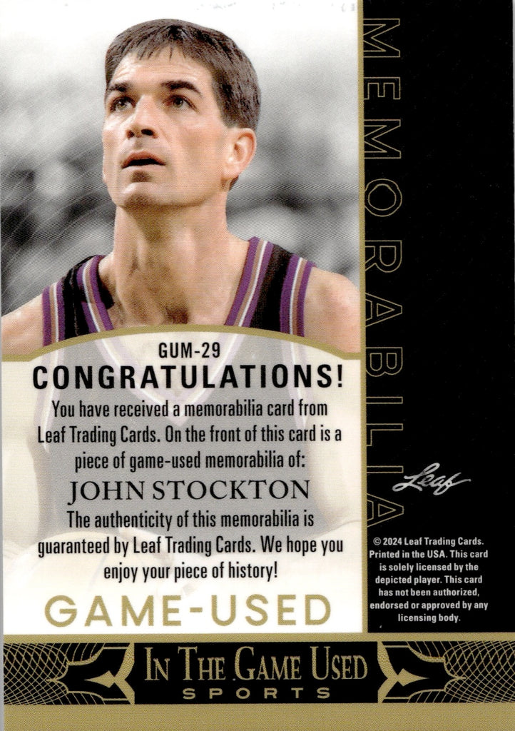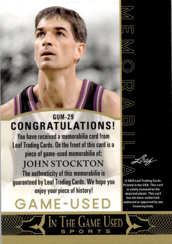 2024 John Stockton Leaf In the Game Used GAME USED MEMORABILIA JERSEY NUMBER 12/12 Utah Jazz #GUM-29