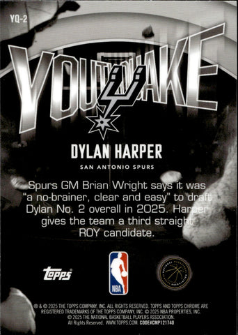 2025-26 Dylan Harper Topps Chrome YOUTHQUAKE ROOKIE San Antonio Spurs #YQ-2
