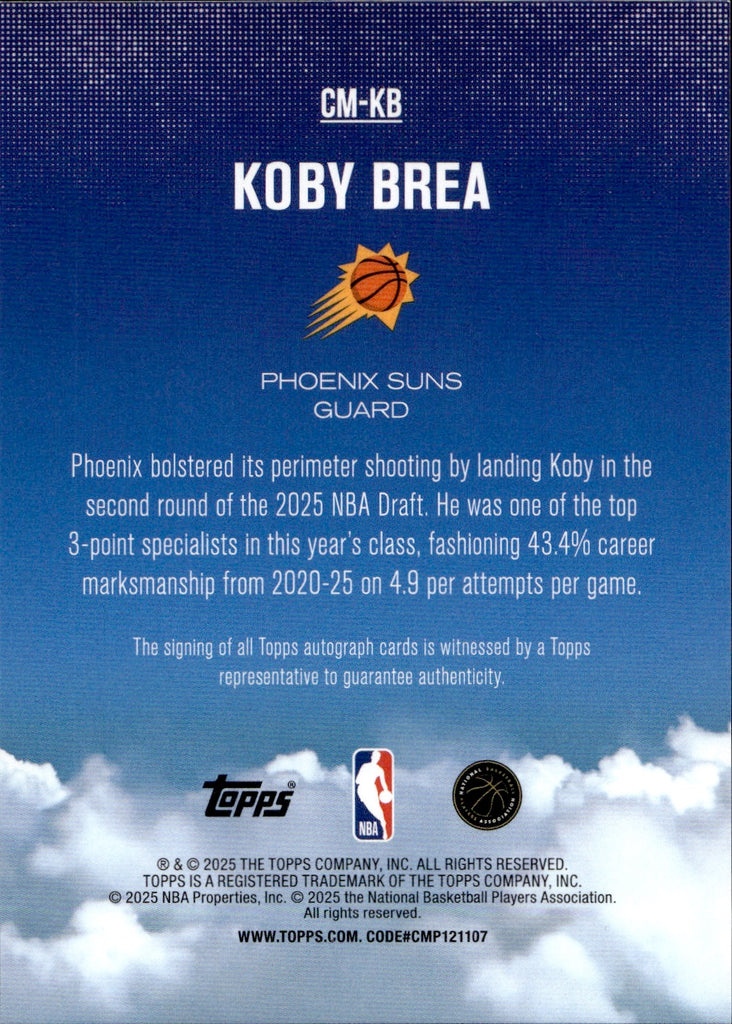 2025-26 Koby Brea Topps CONTEMORARY MARKS ROOKIE AUTO AUTOGRAPH RC #CM-KB Phoenix Suns