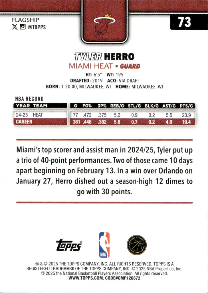 2025-26 Tyler Herro Topps BLACK HOLO FOIL 8/10 #73 Miami Heat