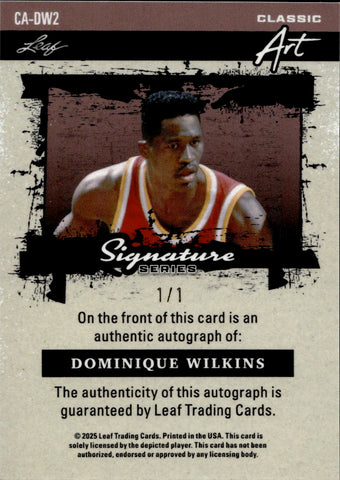 2025 Dominique Wilkins Leaf Signature Series CLASSIC ART PLATINUM LAVA AUTO 1/1 ONE OF ONE AUTOGRAPH #CA-DW2 Atlanta Hawks HOF