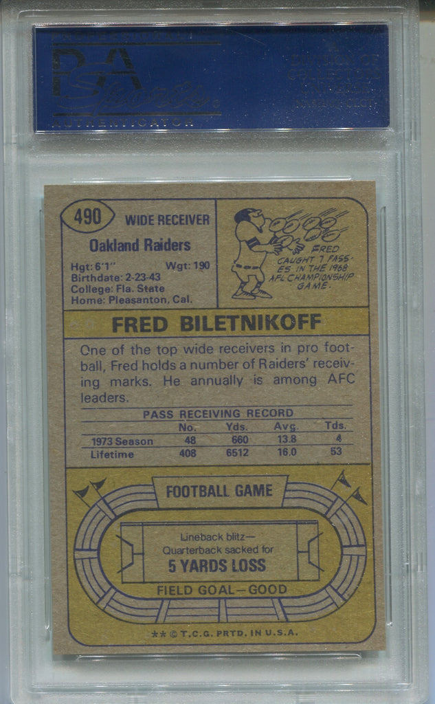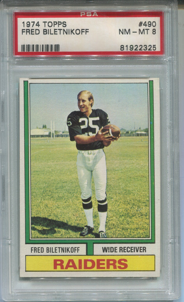 1974 Fred Biletnikoff Topps PSA 8 #490 Oakland Raiders HOF 2325