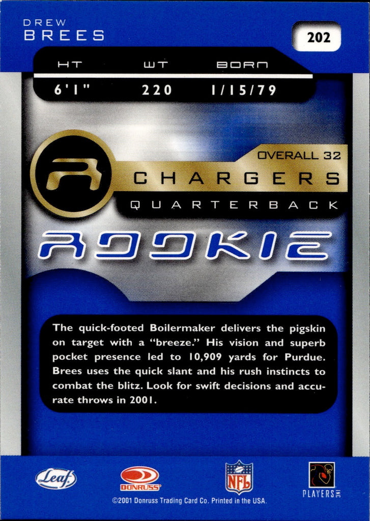 2001 Drew Brees Leaf Quantum ROOKIE RC #202 San Diego Chargers