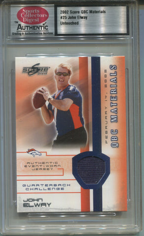 2002 John Elway Score QBC MATERIALS UNTOUCHED JERSEY RELIC #25 Denver Broncos HOF