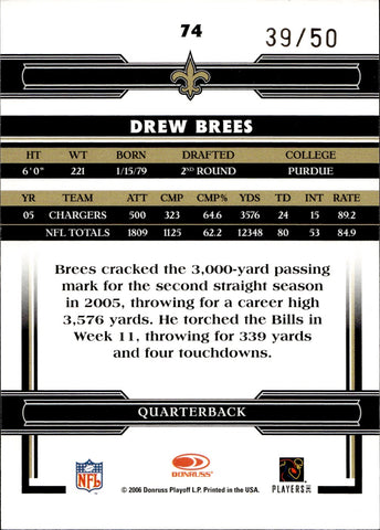 2006 Drew Brees Donruss Threads GOLD HOLOFOIL 39/50 #74 New Orleans Saints