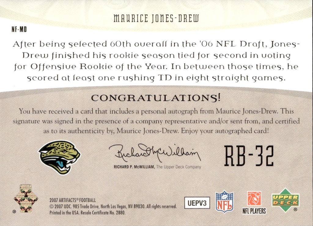 2007 Maurice Jones-Drew Upper Deck Artifacts NFL FACTS AUTOGRAPH AUTO #NF-MD Jacksonville Jaguars