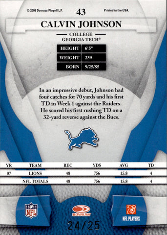 2008 Calvin Johnson Leaf Certified Materials MIRROR GOLD 24/25 #43 Detroit Lions HOF