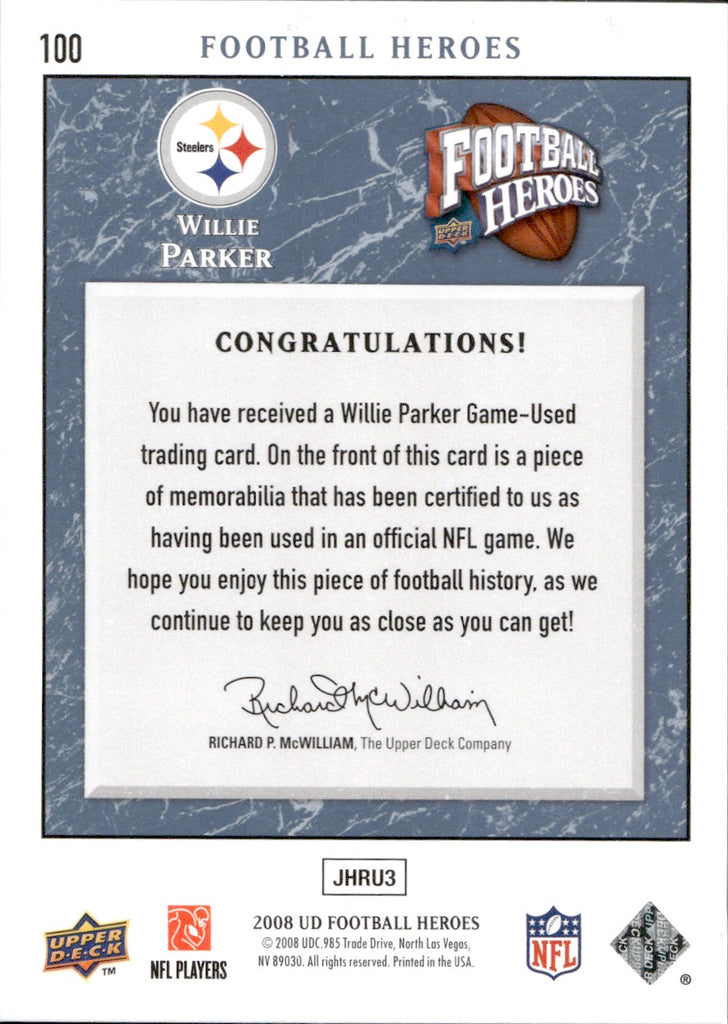 2008 Willie Parker Upper Deck Football Heroes GAME-USED JERSEY 64/125 #100 Pittsburgh Steelers