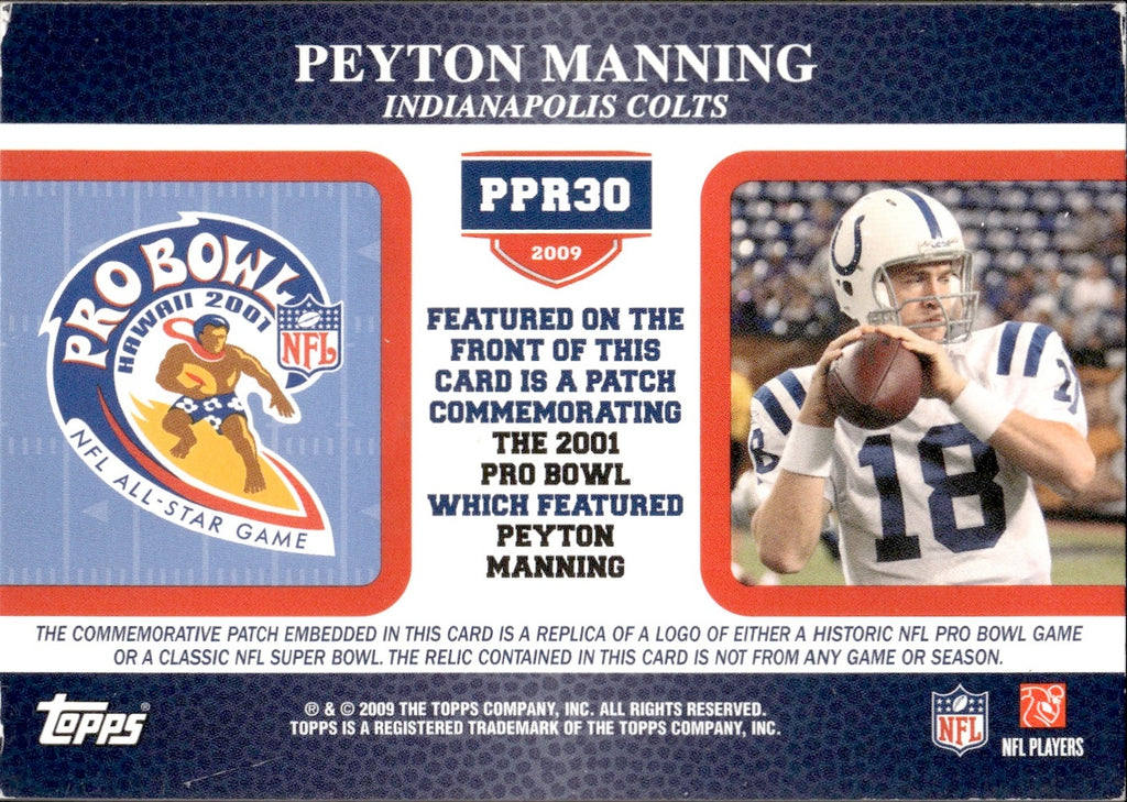 2009 Peyton Manning Topps POSTSEASON COMMEMORATIVE PATCH 2001 PRO BOWL #PPR30 Indianapolis Colts