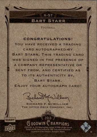 2013 Bart Starr Upper Check Goodwin Champions AUTO AUTOGRAPH #A-ST Green Bay Packers HOF