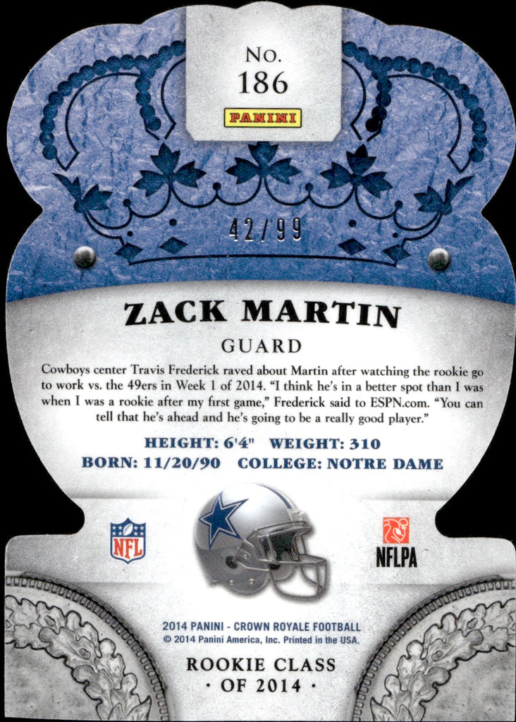 2014 Zack Martin Panini Crown Royale ROOKIE CLASS OF 2014 GOLD 42/99 RC #186 Dallas Cowboys