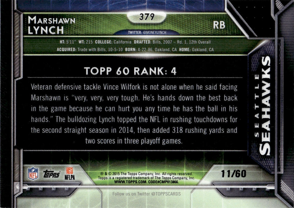 2015 Marshawn Lynch Topps 60th Anniversary RED 11/60 #379 Seattle Seahawks