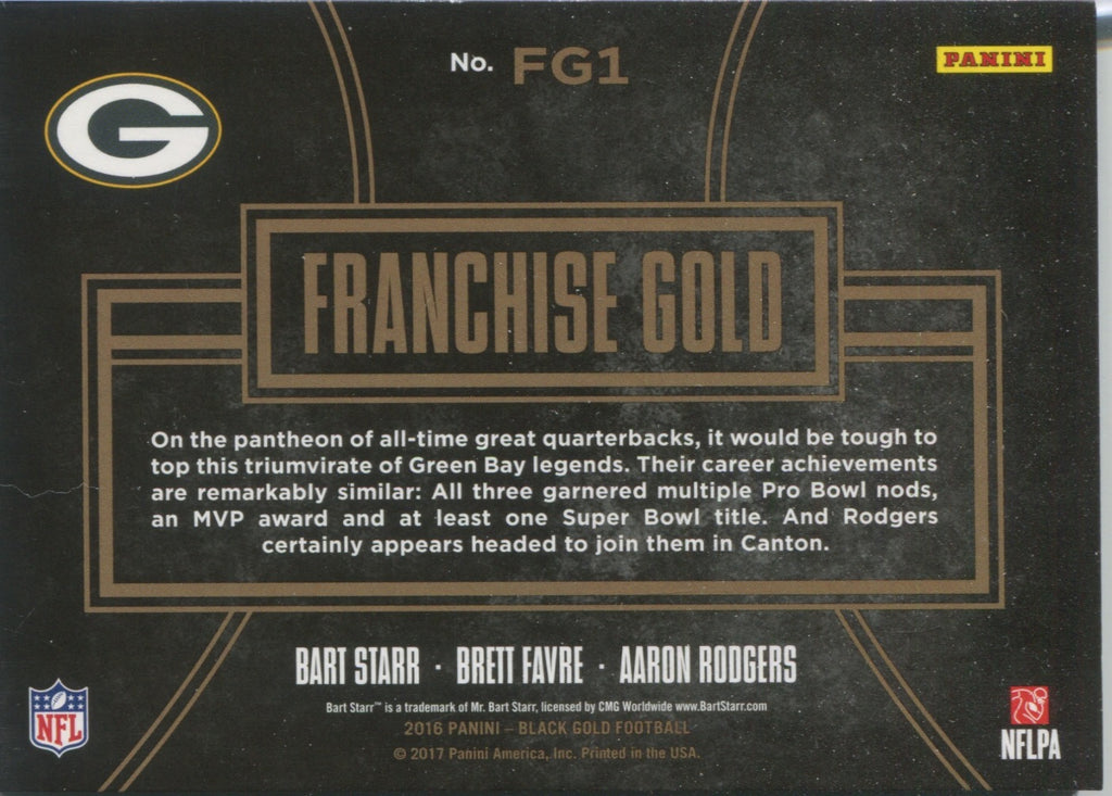 2016 Bart Starr Brett Favre Aaron Rodgers Panini Black Gold GOLD RESERVE FRANCHISE GOLD 10/15 #FG1 Green Bay Packers