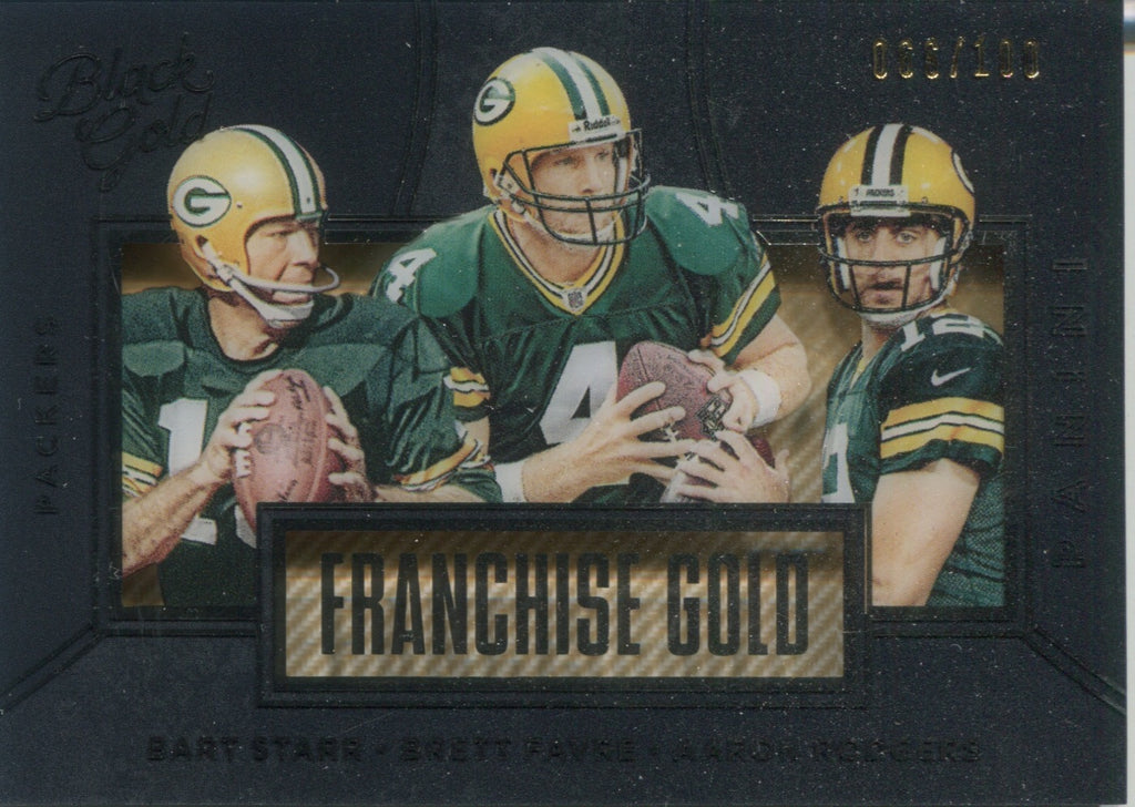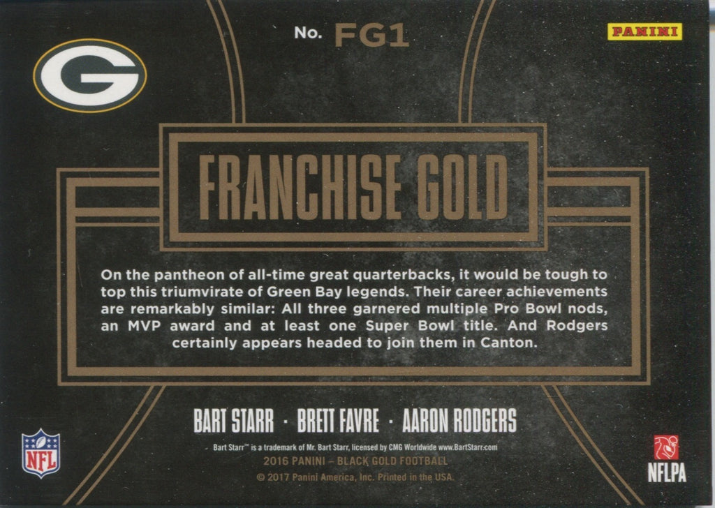 2016 Bart Starr Brett Favre Aaron Rodgers Panini Black Gold WHITE GOLD FRANCHISE GOLD 066/100 #FG1 Green Bay Packers