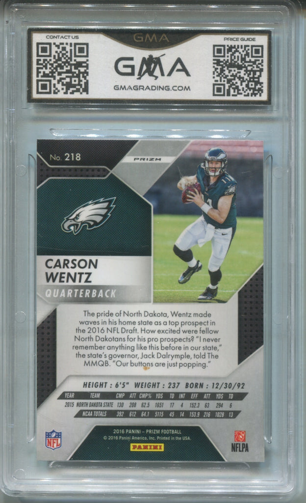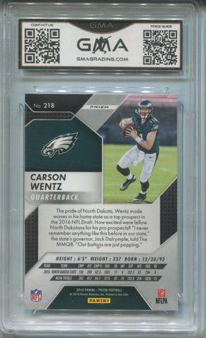 2016 Carson Wentz Panini Prizm FLASH PRIZM ROOKIE RC GMA 10 #218 Philadelphia Eagles 3057