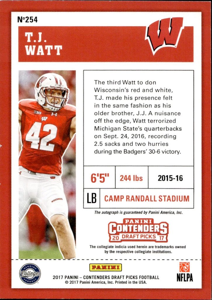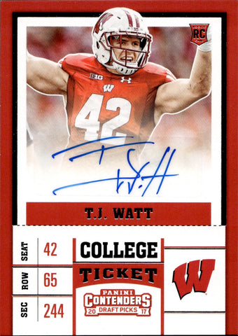 2017 T.J. Watt Panini Contenders Draft Picks COLLEGE TICKET AUTO AUTOGRAPH RC #254 Pittsburgh Steelers