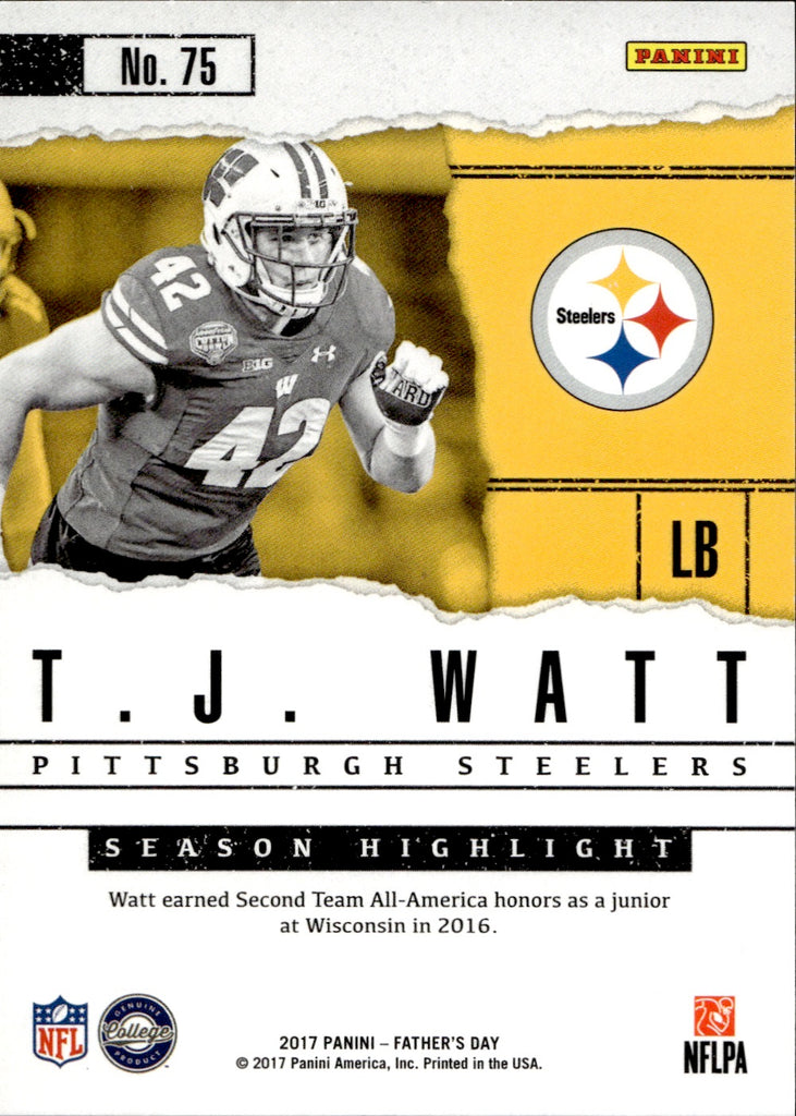 2017 T.J. Watt Panini Father's Day FUTURE FRAMES ROOKIE 02/10 RC #75 Pittsburgh Steelers