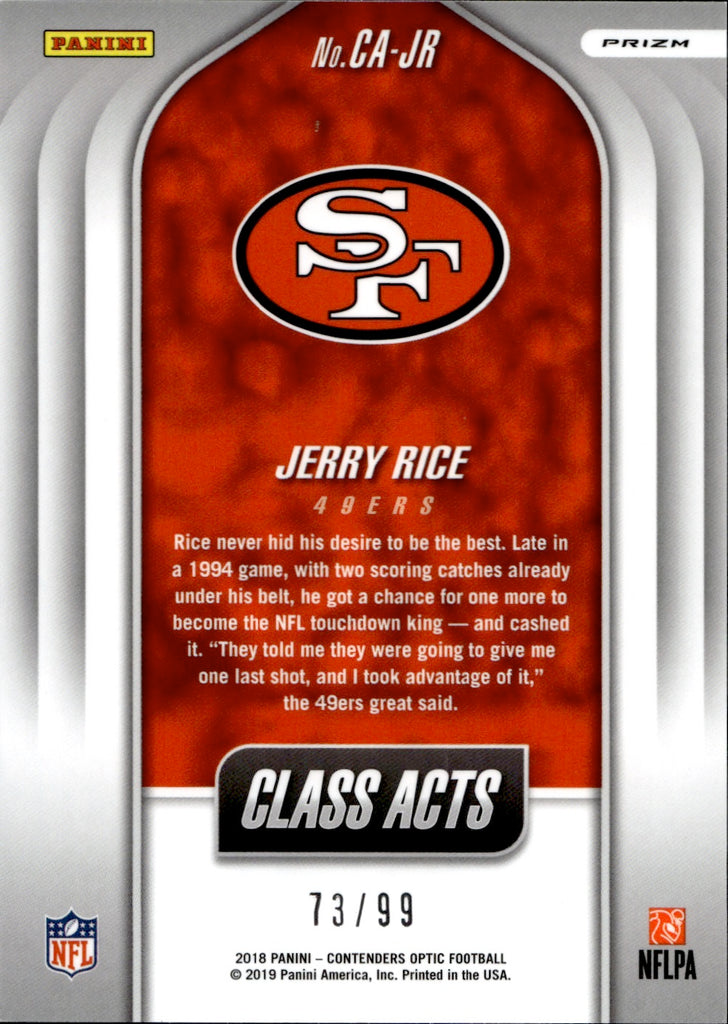 2018 Jerry Rice Panini Contenders Optic CLASS ACTS PURPLE San Francisco 49ers #CA-JR