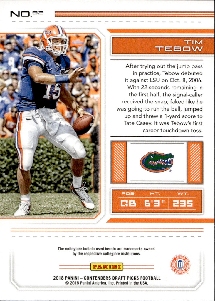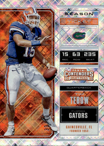 2018 Tim Tebow Panini Contenders Draft Picks DIAMOND TICKET 33/49 #92 Denver Broncos