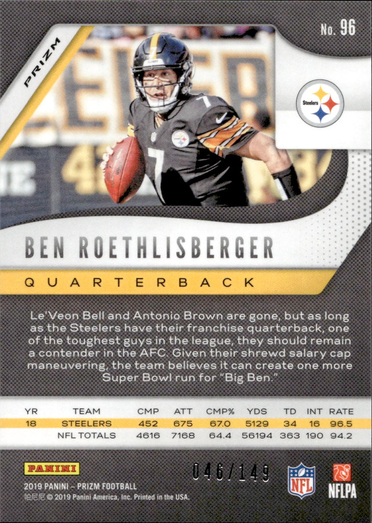 2019 Ben Roethlisberger Panini Prizm RED WAVE PRIZM 46/149 #96 Pittsburgh Steelers