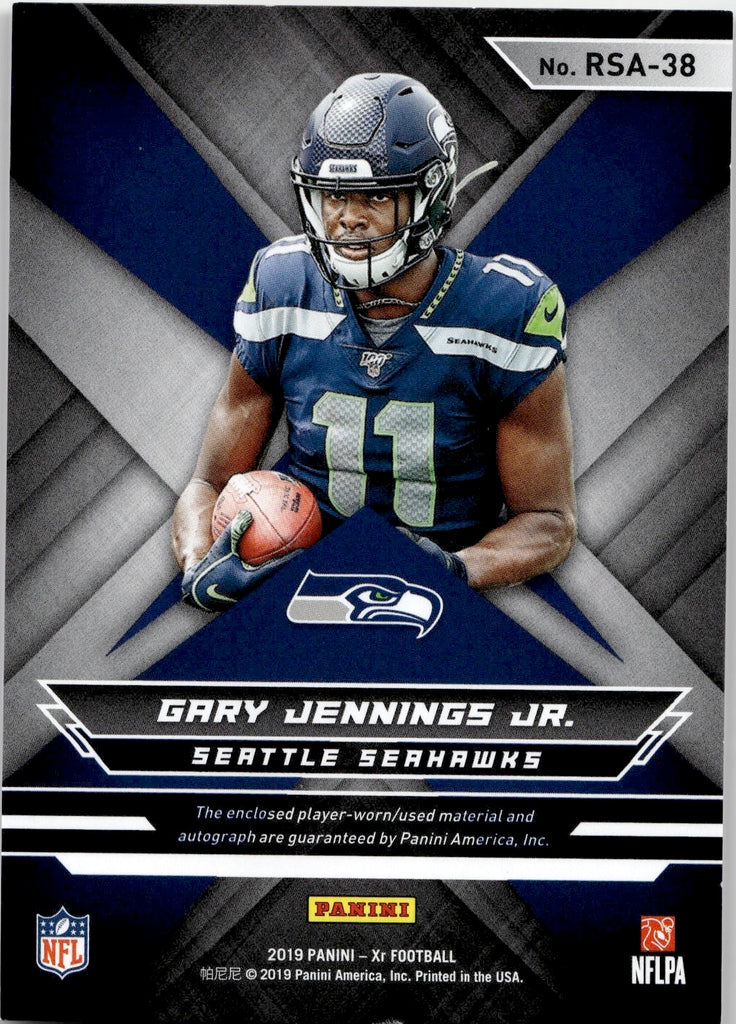 2019 Gary Jennings Jr. Panini XR ROOKIE SWATCH BLUE PATCH JERSEY AUTO 35/49 Seattle Seahawks #RSA-38