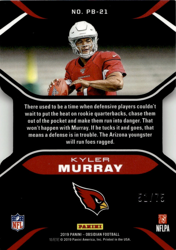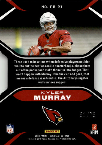 2019 Kyler Murray Panini Obsidian PITCH BLACK DIE CUT ROOKIE 51/75 RC #PB-21 Arizona Cardinals