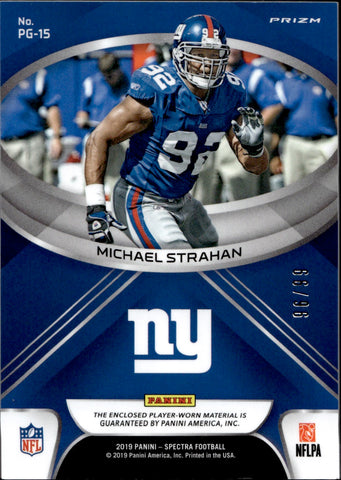 2019 Michael Strahan Panini Spectra PILLARS OF THE GAME MATERIALS NEON BLUE JERSEY 96/99 New York Giants #PG-15