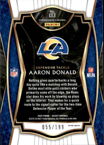 2020 Aaron Donald Panini Select PREMIER LEVEL TRI-COLOR PRIZM 55/199 #133 Los Angeles Rams