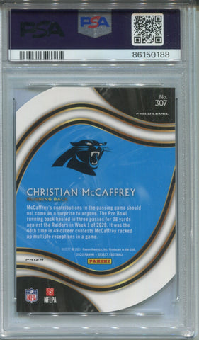 2020 Christian McCaffrey Panini Selct ZEBRA FIELD LEVEL PSA 10 #307 Carolina Panthers 0188