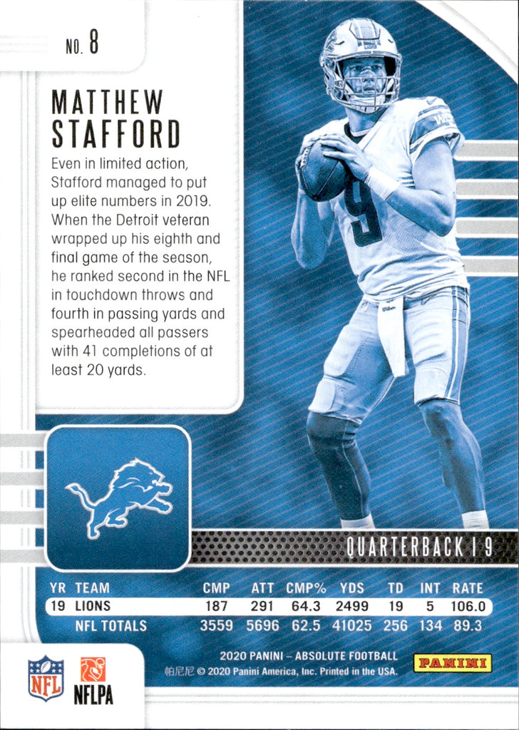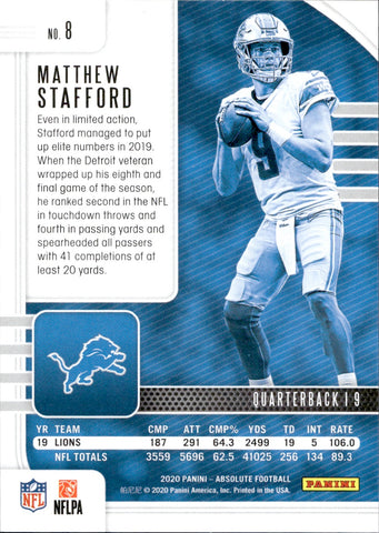 2020 Matthew Stafford Panini Absolute RED SQUARES 69/199 #8 Detroit Lions