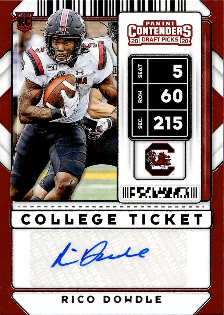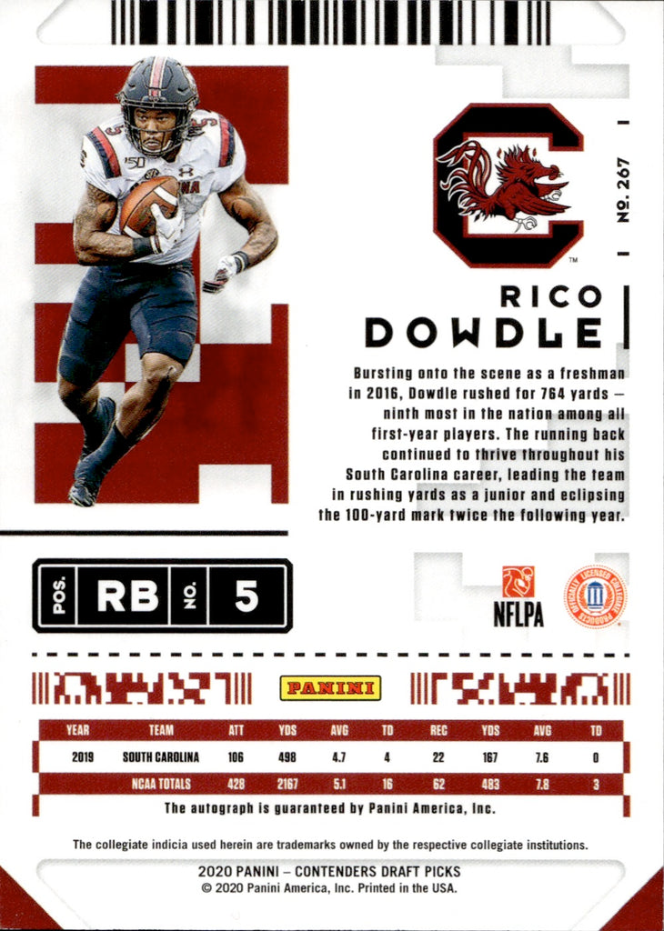 2020 Rico Dowdle Panini Contenders Draft Picks COLLEGE TICKET ROOKIE AUTO AUTOGRAPH #267 Carolina Panthers