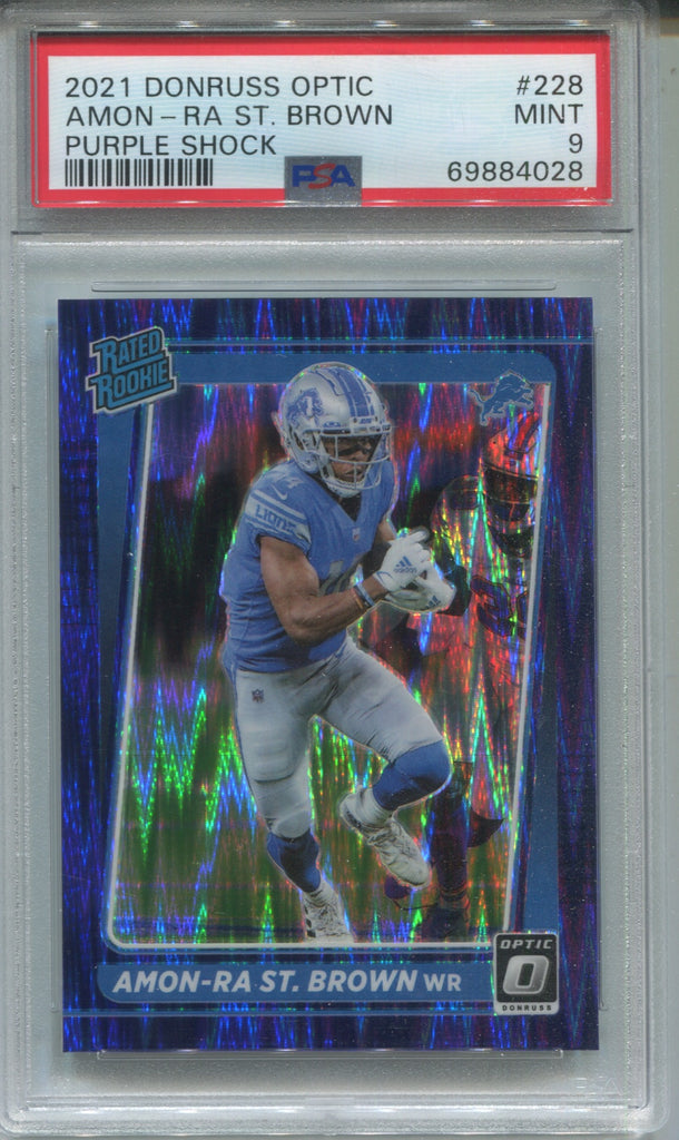 2021 Amon-Ra St. Brown Donruss Optic PURPLE SHOCK RATED ROOKIE PSA 9 #228 Detroit Lions 4028