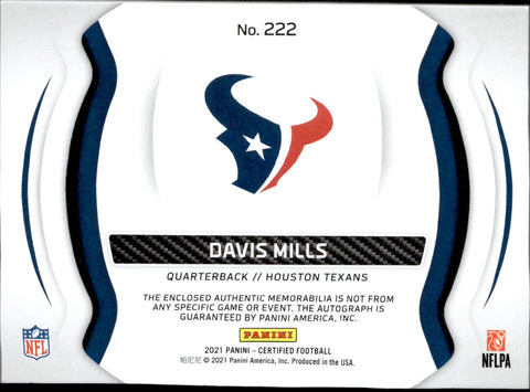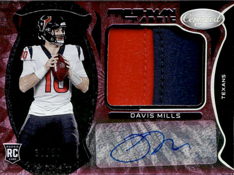 2021 Davis Mills Panini Certified FRESHMAN FABRIC SIGNATURES MIRROR PINK ETCH JERSEY PATCH AUTOGRAPH ROOKIE AUTO RC 30/30 #222 Houston Texans