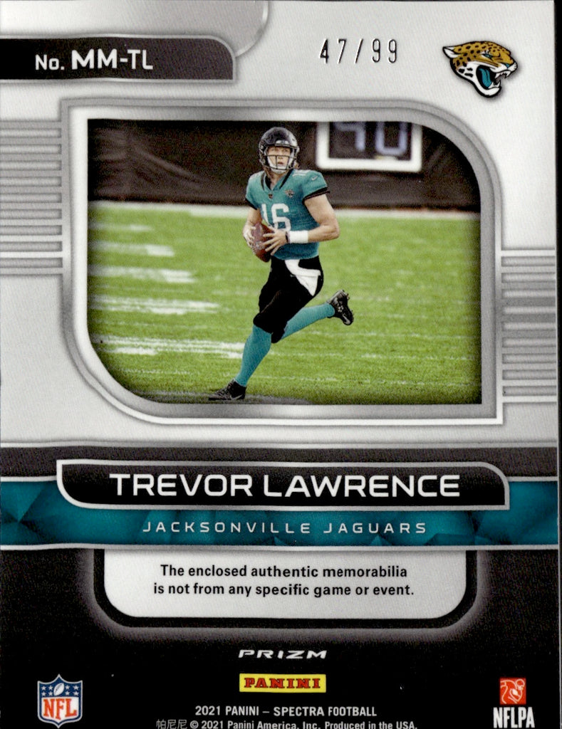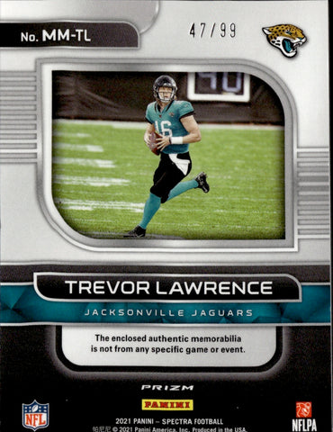 2021 Trevor Lawrence Panini SPECTRA ROOKIE MONUMENTAL JERSEY 47/99 RELIC #MM-TRL Jacksonville Jaguars