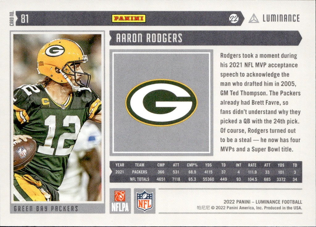 2022 Aaron Rodgers Panini Luminance TEAL 24/35 #81 Green Bay Packers