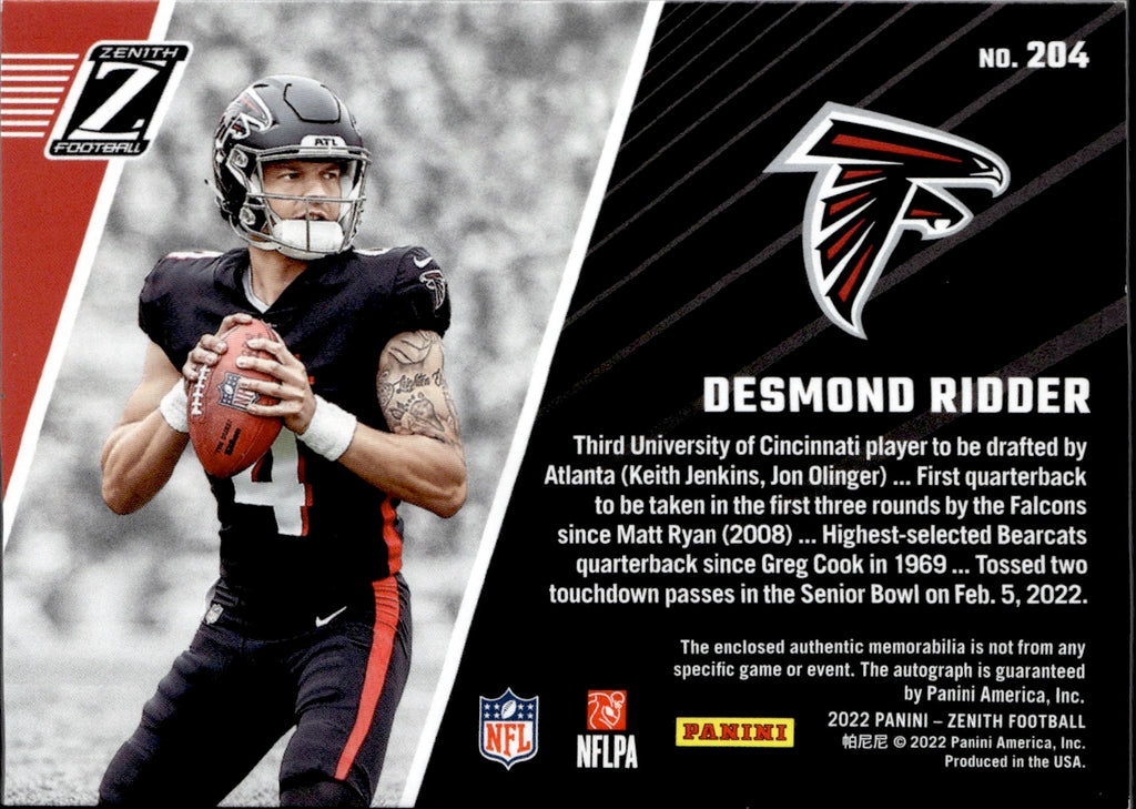 2022 Desmond Ridder Panini Zenith ROOKIE PATCH AUTOGRAPH AUTO 178/299 Atlanta Falcons #204