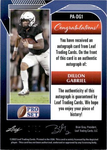 2022 Dillon Gabriel Leaf Pro Set BLUE WAVE AUTOGRAPH ROOKIE AUTO RC 12/30 #PA-DG1 Central Florida Knights Cleveland Browns
