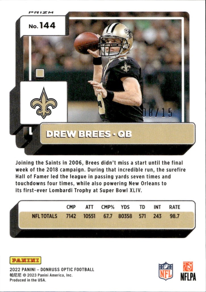 2022 Drew Brees Donruss Optic PURPLE STARS 08/15 #144 New Orleans Saints