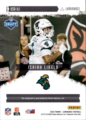 2022 Isaiah Likely Panini Luminance YEAR ONE SIGNATURES ROOKIE AUTO Baltimore Ravens #YSR-ILI