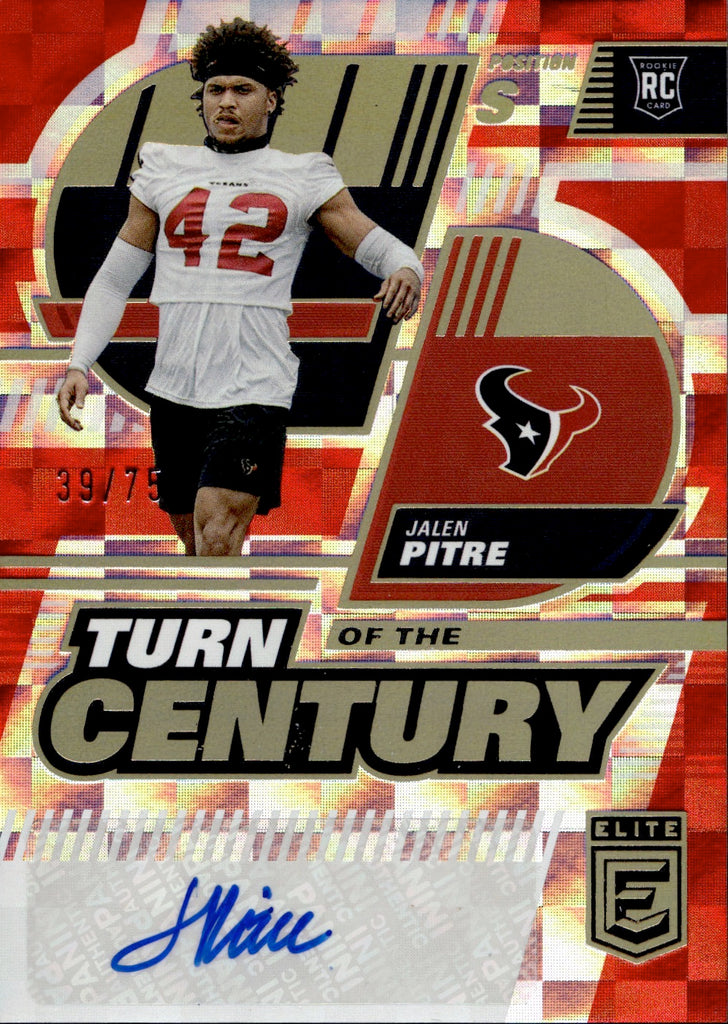2022 Jalen Pitre Panini Donruss Elite TURN OF THE CENTURY RED ROOKIE AUTO 39/75 Houston Texans TC-47